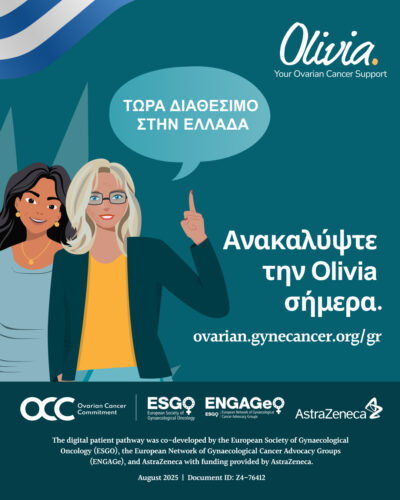 ENGAGe and ESGO are proud to announce on September 12 that the Olivia digital patient support pathway is now available for ovarian cancer patients in Greece!